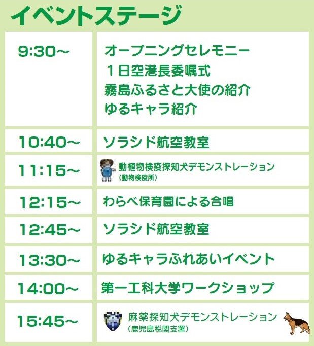 ステージでは航空教室や麻薬探知犬・動植物検疫探知犬によるデモンストレーションを開催!