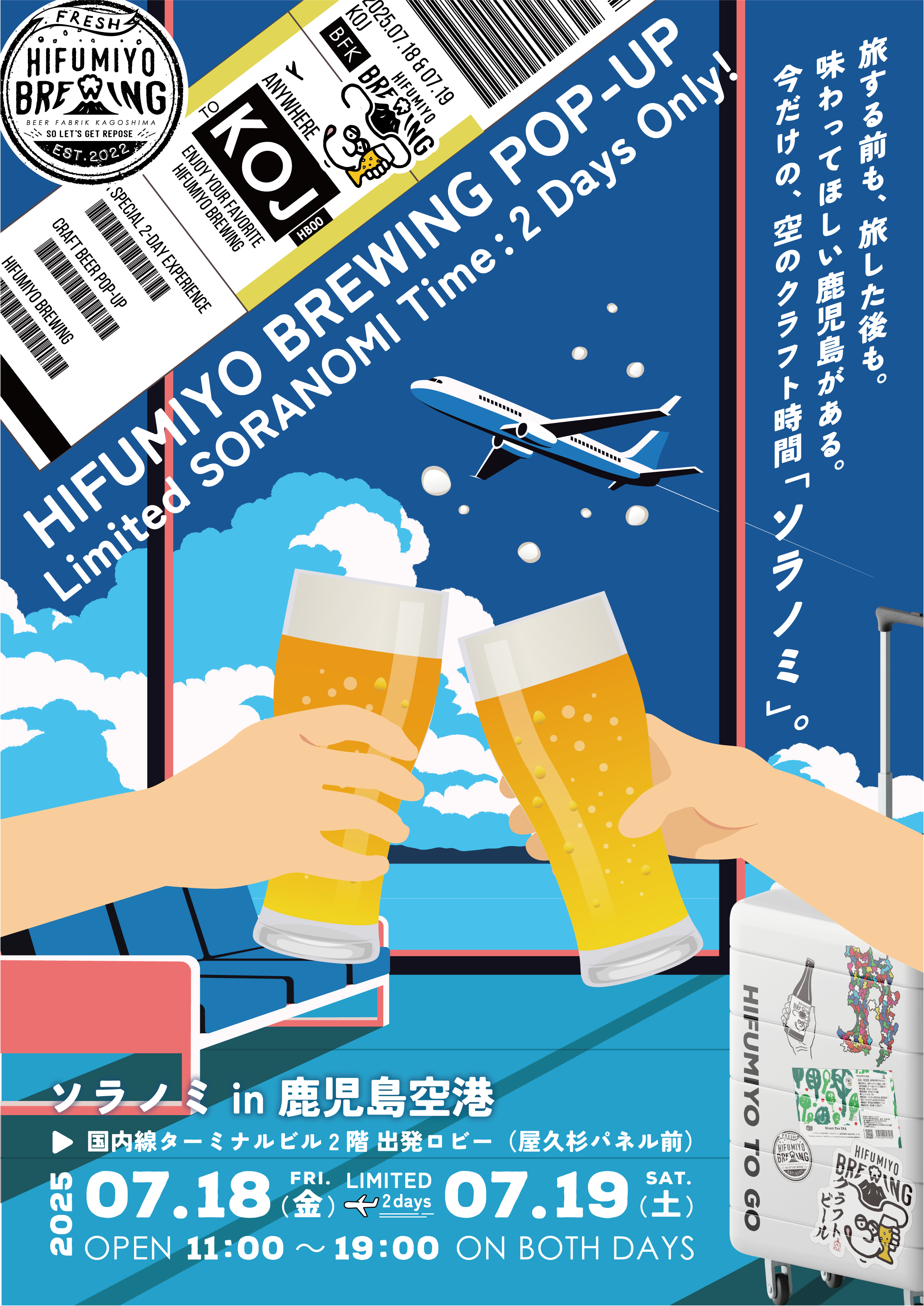 鹿児島市新屋敷のクラフトビール醸造所「ひふみよブリューイング」が期間限定POP UPで鹿児島空港に初登場します!